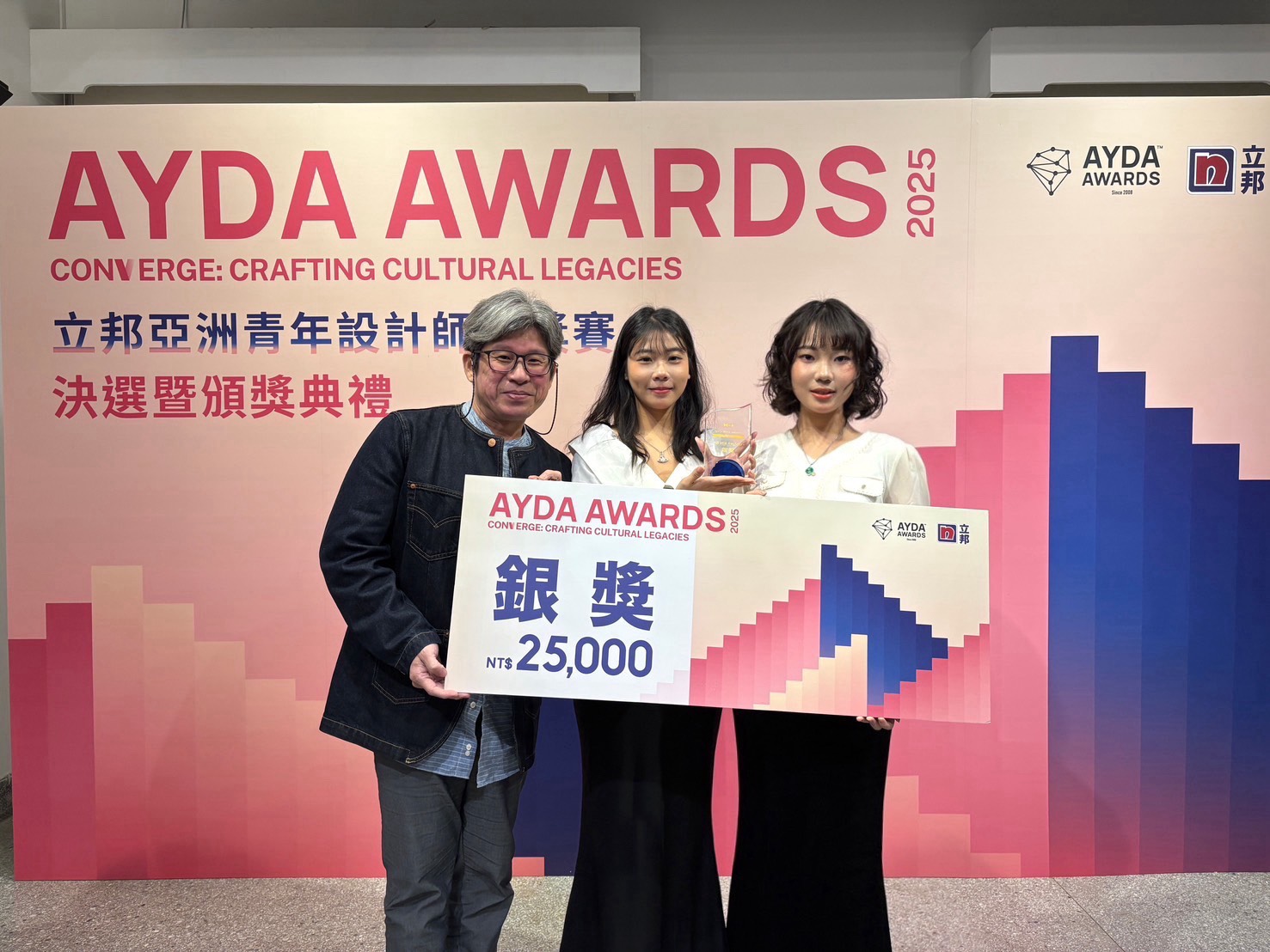 感謝朱啟銘老師帶隊,本系大三學生劉芷安與陳誼庭同學,榮獲立邦 2025AYDA AWARDS設計競圖大賽的銀獎賞