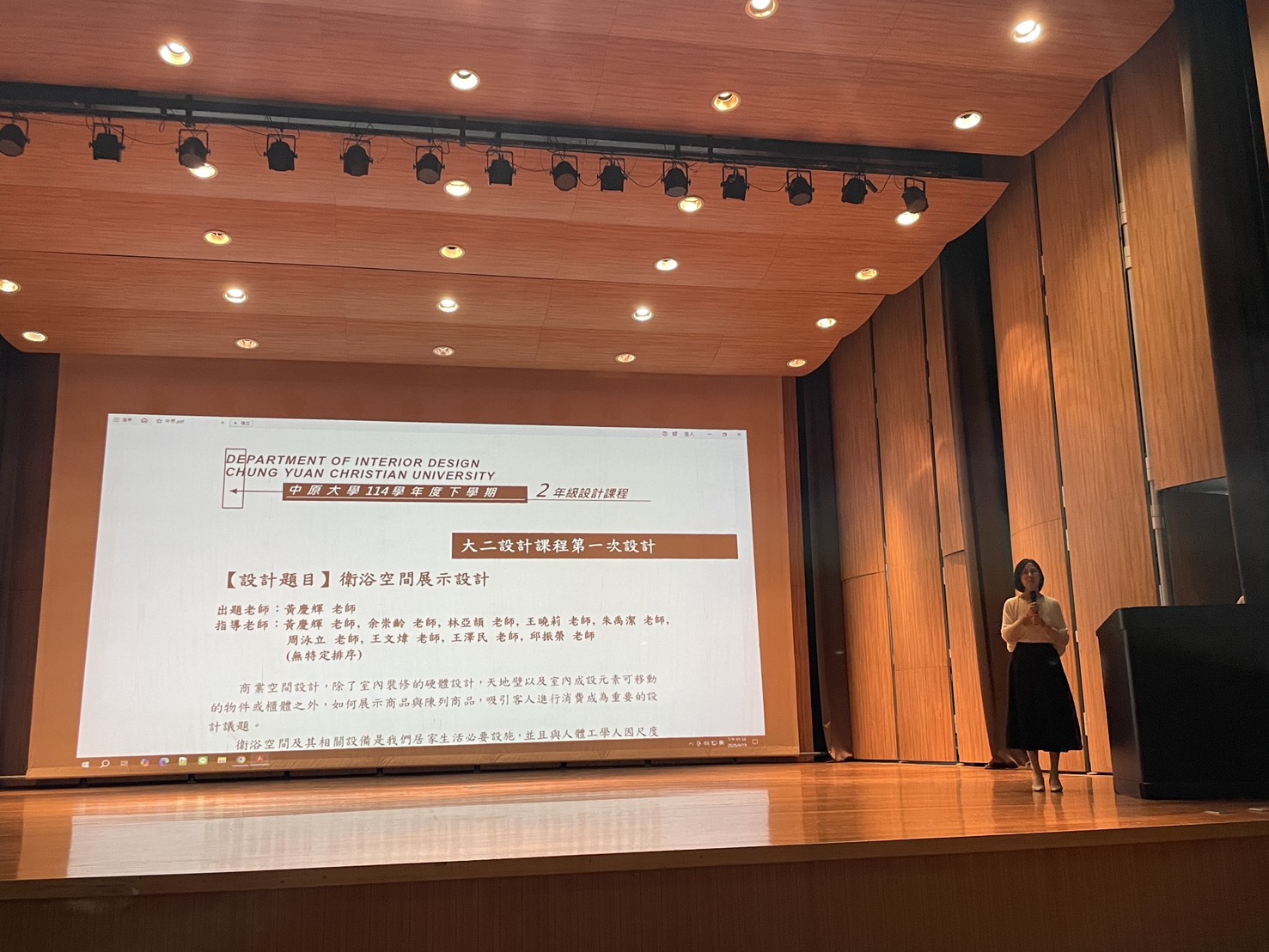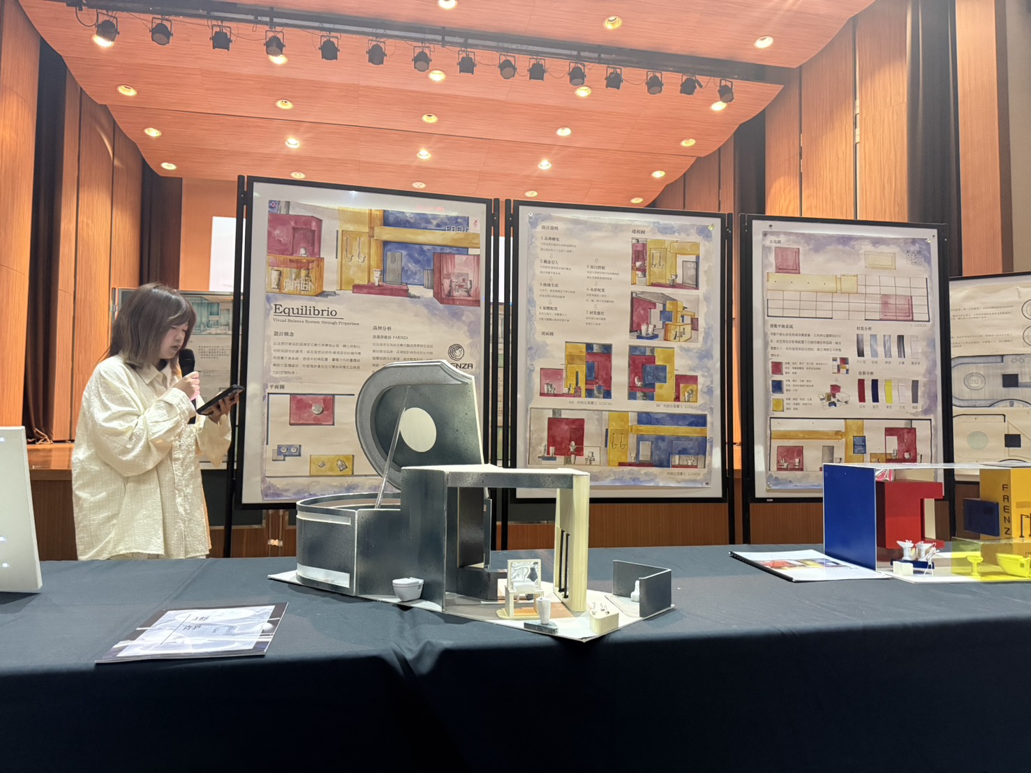 今年大二的設計題目為「衛浴空間展示設計」,學生們透過對機能需求、材質應用及空間氛圍的深度解構,將私密的衛浴空間轉化為具備展示性兼具美感的場域,展現出中原室設學生紮實的基礎訓練與創新的思維。